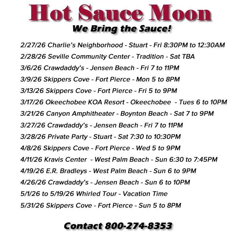 Events Schedule for Hot Sauce Moon